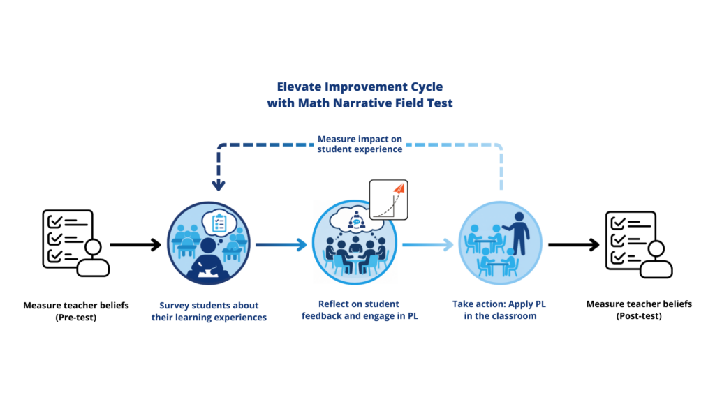 The BranchED field test examined how narrative-based framing influences educators’ confidence, beliefs, and instructional practice, hypothesizing that reinforcing these narratives, in a systematic manner (self-assessment, reflection, application and observation) will increase educator self-efficacy and promote the use of the math narratives.