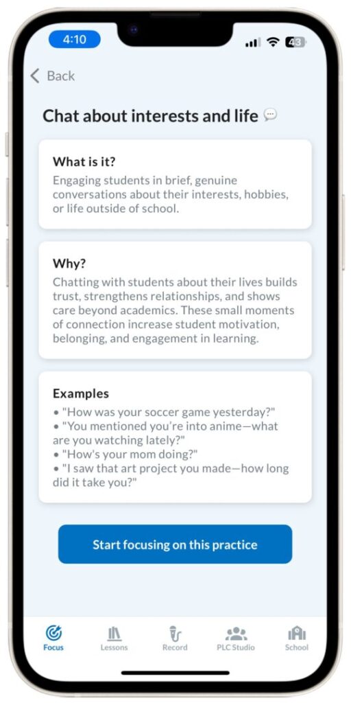 teachers with a clear definition, rationale, and examples to guide focus and goal setting.
