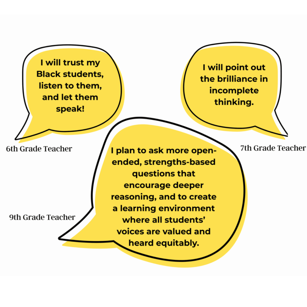Positioning Black students as primary messengers was the most effective aspect of the intervention. Teachers got the opportunity to see students as their full selves: their emotions, lived experiences, and perspectives on learning math. The authentic videos disrupted deficit-based assumptions and invited teachers into reflection rather than defensiveness.