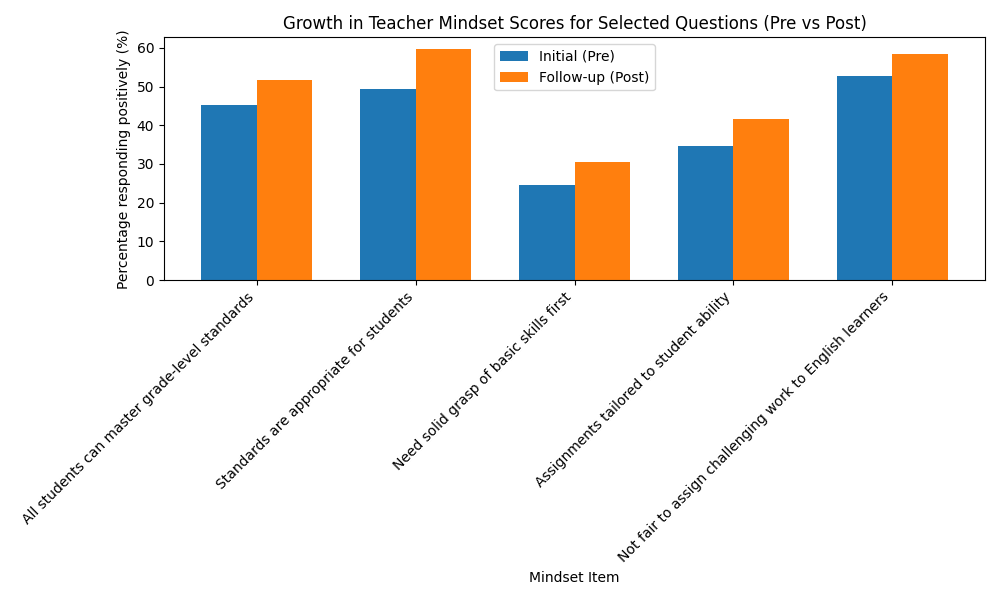Differentiate between mindset shifts and observable classroom practices, especially for constructs not readily visible in instruction.