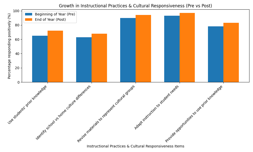 Teachers also identified specific practices they intended to implement, including more intentional relationship-building throughout the year, more inclusive and affirming language, increased listening and student voice routines, and shifts from control and compliance toward connection and care.